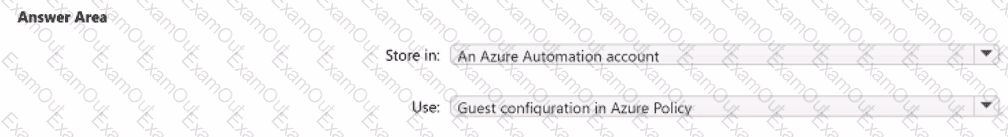 Where should you store the DSC scripts, and what should you use to apply DSC to the servers? To answer, select the appropriate options in the answer area.