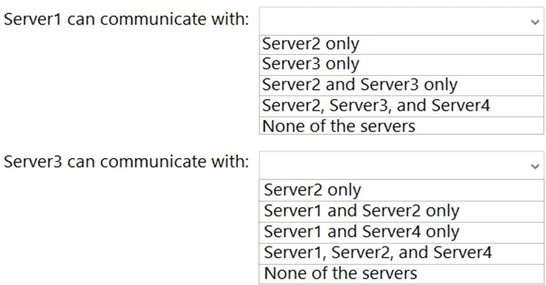 With which servers can Server1 and Server3 communicate? To answer, select the appropriate options in the answer area.