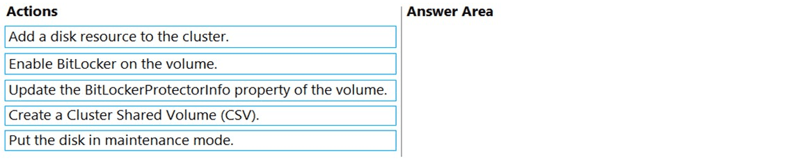 In which order should you perform the actions? To answer, move all actions from the list of actions to the answer area and arrange them in the correct order.