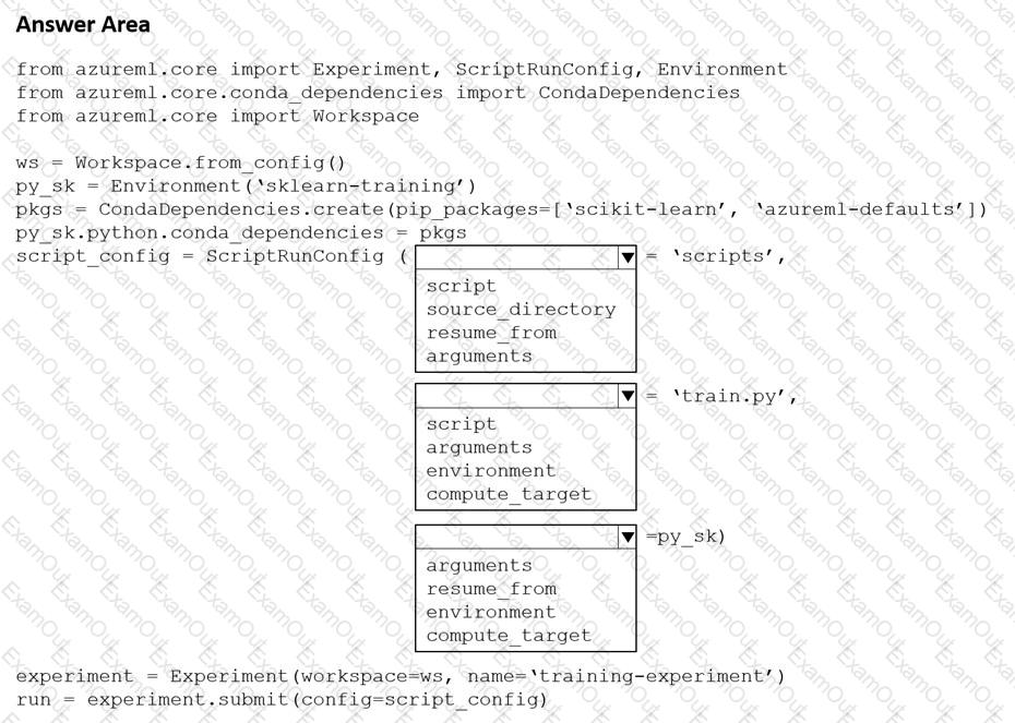 How should you complete the code segment? To answer, select the appropriate options in the answer area.