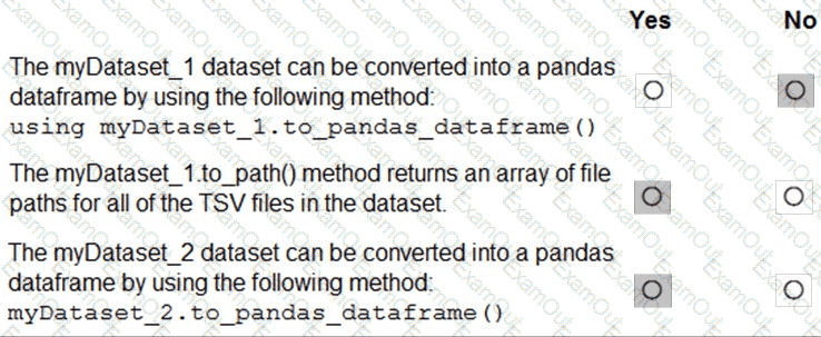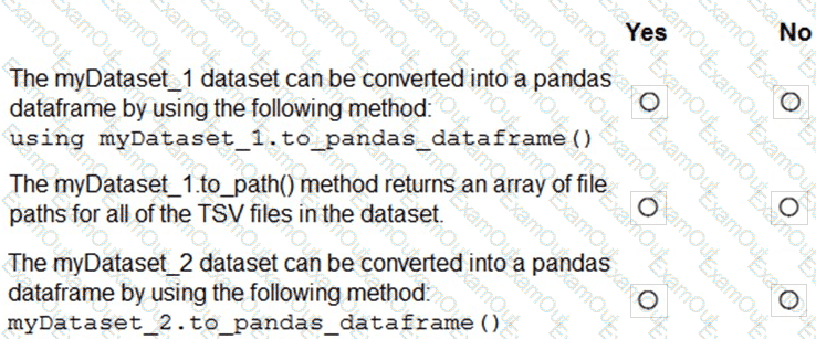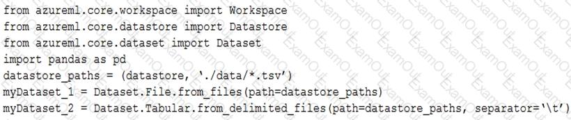 You have an Azure blob container that contains a set of TSV files. The Azure blob container is registered as a datastore for an Azure Machine Learning service workspace. Each TSV file uses the same data schema.