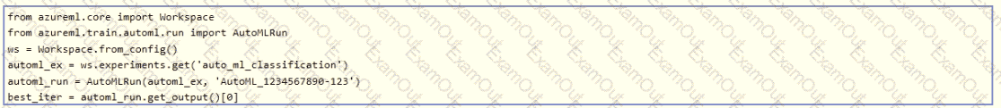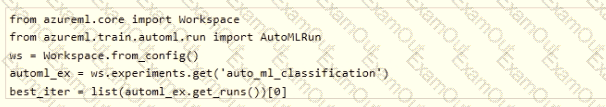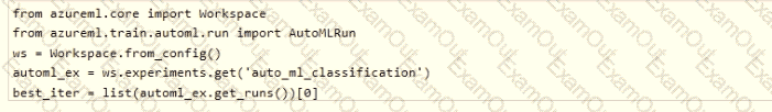 You need to write a script that uses the Azure Machine Learning SDK to retrieve the best iteration of the experiment run. Which Python code segment should you use?