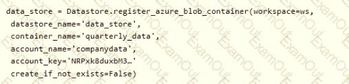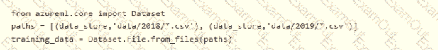 You create an Azure Machine Learning service datastore in a workspace. The datastore contains the following files: