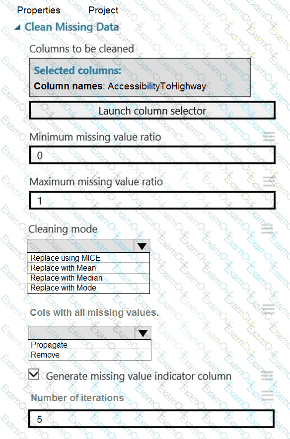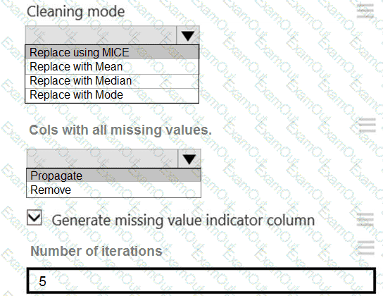 How should you configure the Clean Missing Data module? To answer, select the appropriate options in the answer area.