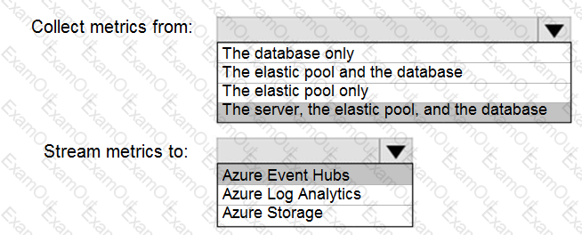 How should you collect and stream metrics? To answer, select the appropriate options in the answer area.