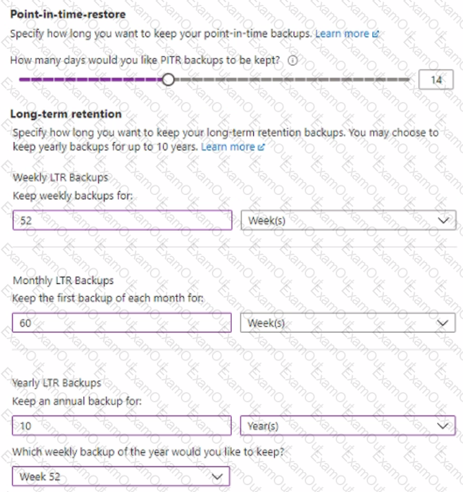 You configure backups for an Azure SQL database as shown in the following exhibit.