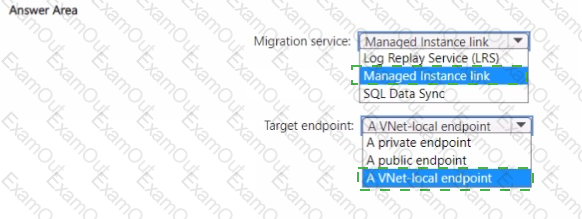 You need to recommend which service and target endpoint to use when migrating the databases from SVR1 to Instance1. The solution must meet the availability requirements.