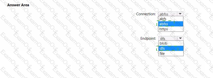 Which connection and endpoint should you specify? To answer, select the appropriate options in the answer area.