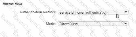 Which data source authentication method and mode should you use? To answer, select the appropriate options in the answer area.