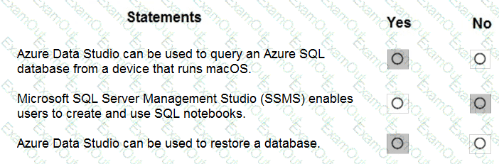 For each of the following statements, select Yes if the statement is true. Otherwise, select No.