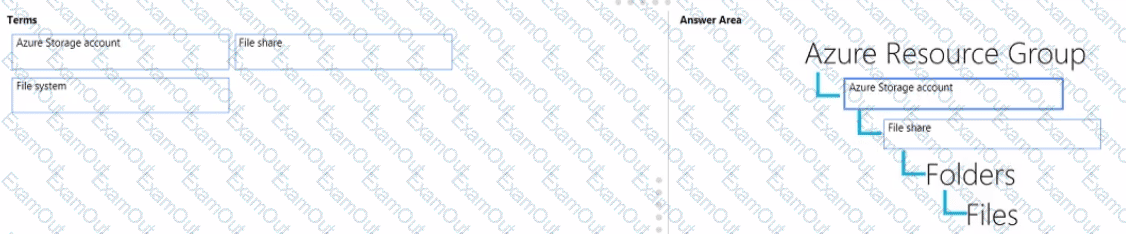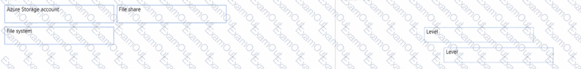 Match the Azure Data Lake Storage terms to the appropriate levels in the hierarchy.
