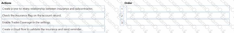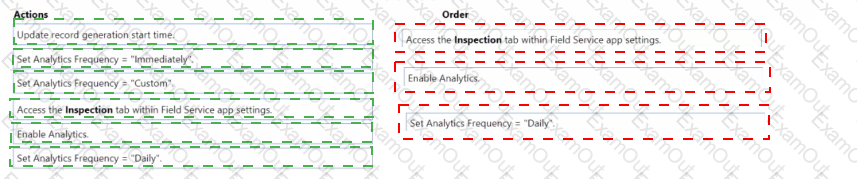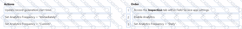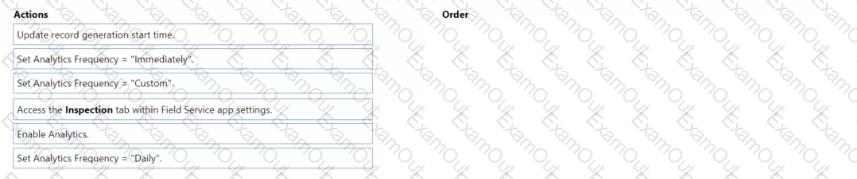 Which three actions should you perform in sequence in the Field Service app? To answer, move the three appropriate actions from the list of actions to the answer area. Arrange the three actions in the order.
