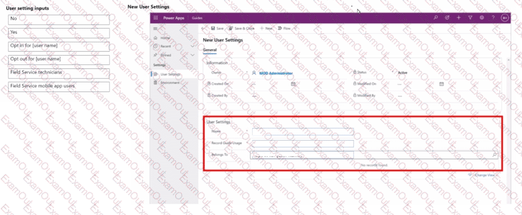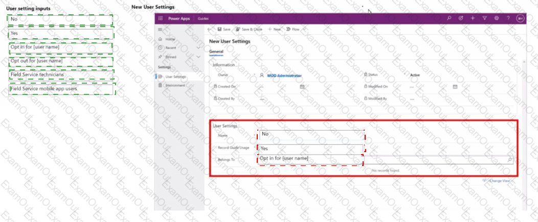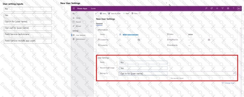 How should you configure the user settings? To answer, move the appropriate configurations to the correct location. You may use each configuration once or not at all. You may need to drag the split bar between panes or scroll to view content.