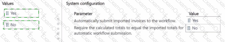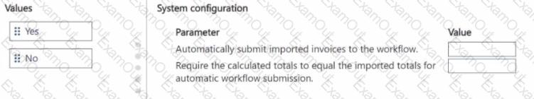 How should you configure the system? To answer, move the appropriate Value to the correct Parameter. You may use each Value once, more than once, or not at all. You may need to move the split bar between panes or scroll to view content.