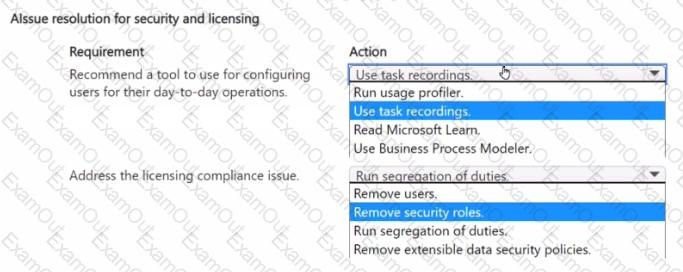 Which actions should you complete for each requirement? To answer, select the appropriate options in the answer area.