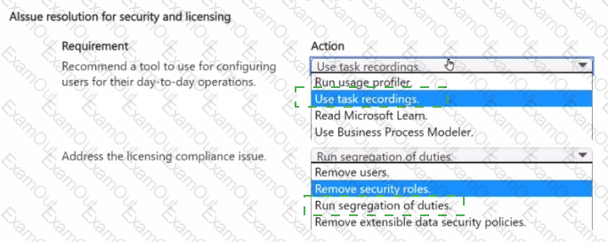 Which actions should you perform for each requirement? To answer, select the appropriate options in the answer area.