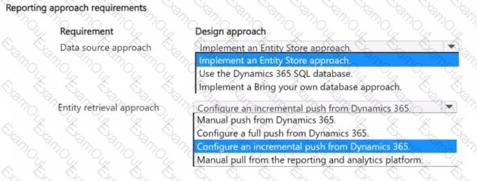 Which design approach should you use for each requirement? To answer, select the appropriate options in the answer area.