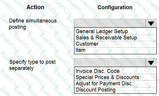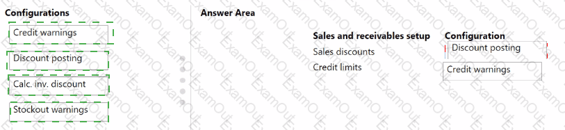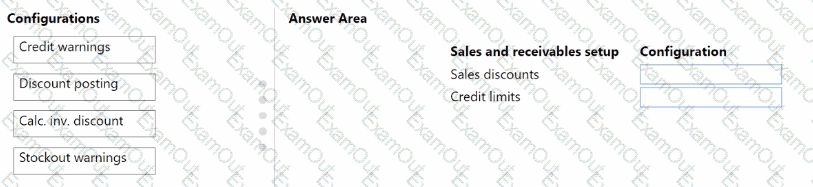 What should you configure for each setup area? To answer, drag the appropriate configurations to the correct sales and receivables setup. Each configuration may be used once, more than once, or not at all. You may need to drag the split bar between panes or scroll to view content.