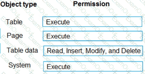 Which permission or set of permissions is allowed for each type of object? To answer, drag the appropriate permissions to the correct object types. Each permission set may be used once, more than once, or not at all. You may need to drag the split bar between panes or scroll to view content.