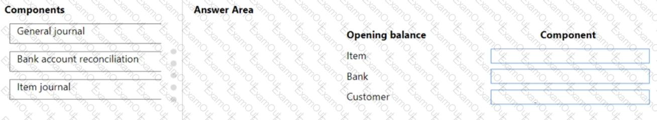 The company must import the following opening balances into Dynamics 365 Business Central: