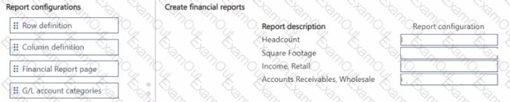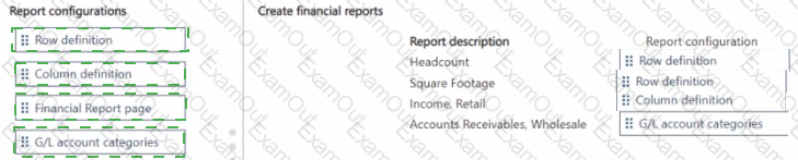 Which report configuration should you use to add the report descriptions lo financial reports? To answer, move the appropriate report configurations to the correct report descriptions. You may use each report configuration once, more than once, of not at all. You may need to move the split bar between panes or scroll to view content