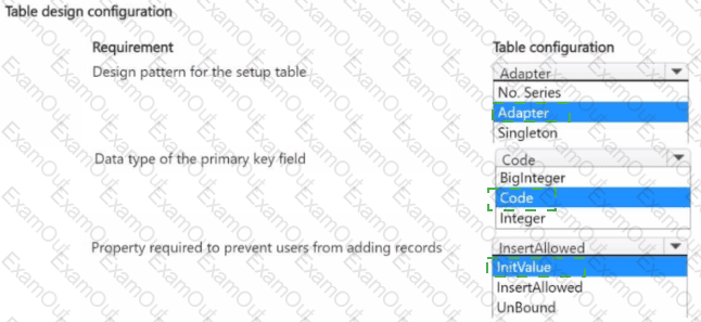Which table configurations should you use? To answer, select the appropriate options in the answer area.