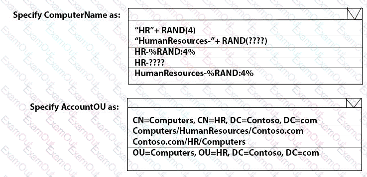 How should you configure the provisioning package? To answer, select the appropriate options in the answer area.