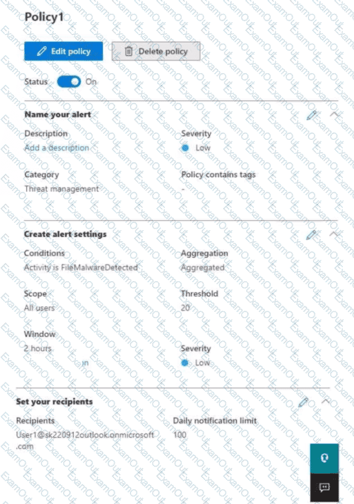 You create an alert policy as shown in the following exhibit.