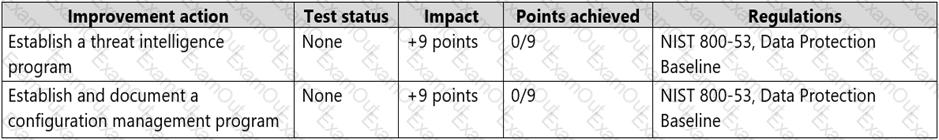 The SP800 assessment has the improvement actions shown in the following table.