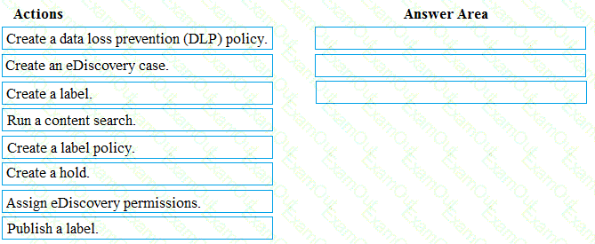Which three actions should you perform in sequence from the Security & Compliance admin center? To answer, move the appropriate actions from the list of actions to the answer area and arrange them in the correct order.
