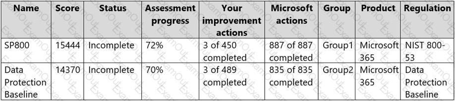 The tenant has two Compliance Manager assessments as shown in the following table.