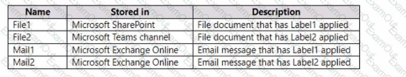 You have a Microsoft 365 E5 subscription that contains the labels shown in the following table.
