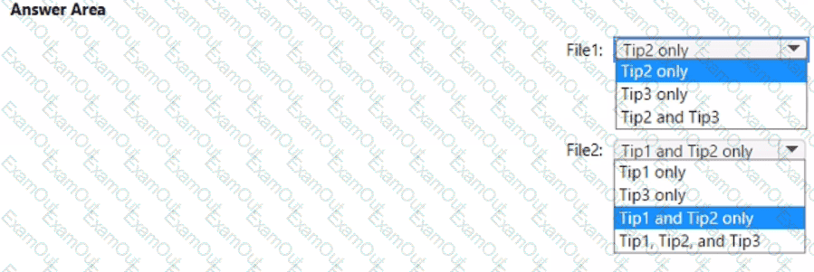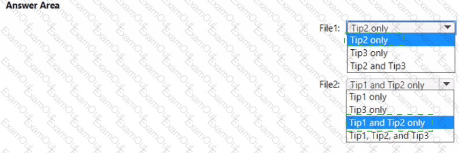 Which policy tip is displayed for each file? To answer, select the appropriate options in the answer area.