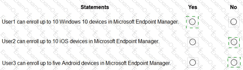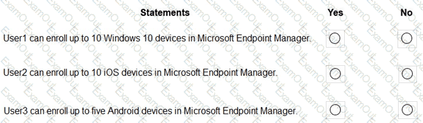 In Microsoft Endpoint Manager, you create three device limit restrictions that have the settings shown in the following table.