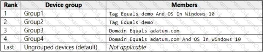 Your company uses Microsoft Defender for Endpoint. Microsoft Defender for Endpoint includes the device groups shown in the following table.