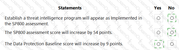 For the Data Protection Baseline assessment, change the Test status of Establish a threat intelligence program to Implemented.