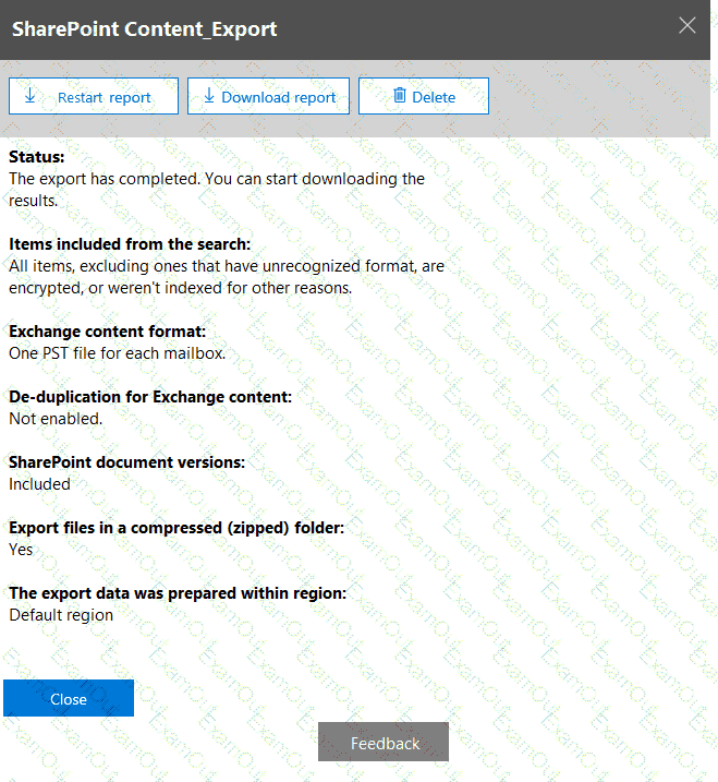From the Security & Compliance admin center, you create a content export as shown in the exhibit. (Click the Exhibit tab.)