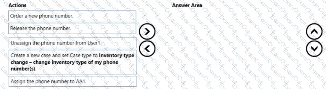 Which three actions should you perform in sequence in the Microsoft Teams admin center? To answer, move the appropriate actions from the list of actions to the answer area and arrange them in the correct order.