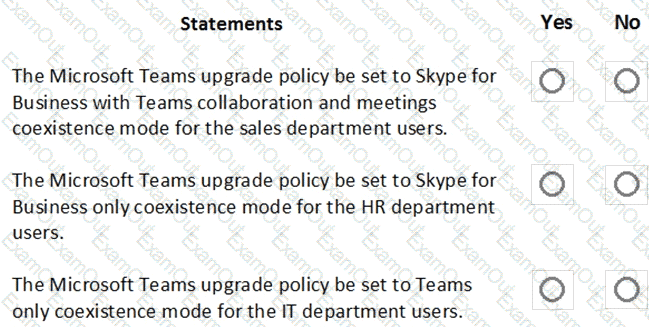 You need to configure Microsoft Teams to meet the department upgrade requirements.