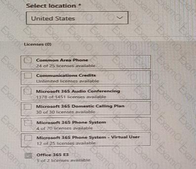 Which three licenses should you assign? To answer, select the licenses in the answer area.