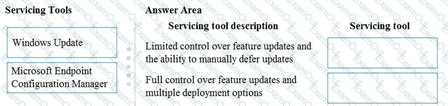 You need to identify which servicing tools the company should use for Windows 10.