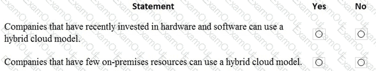 For each of the following statements, select Yes if the statement is true. Otherwise, select No.