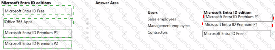 What should you use? To answer, drag the appropriate Microsoft Entra ID editions to the correct users. Each Microsoft Entra ID edition may be used once, more than once, or not at all. You may need to drag the splitbar between panes or scroll to view content.