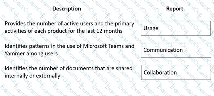 A company plans to use the reports that are available in Microsoft 365 usage analytics.