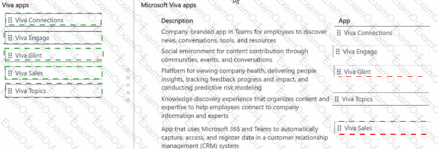 Match each app to its feature. To answer, move the appropriate Viva app from the column on the left to its description on the right.You may use each app once, more than once or not at all.