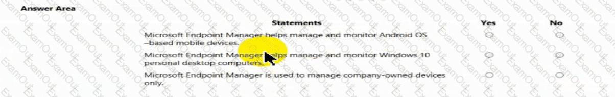 Instructions: For each of the following statements, select Yes if the statement is true. Otherwise, select No.