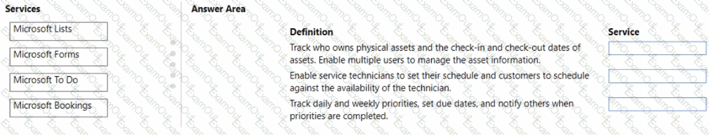 To answer, drag the appropriate service from the column on the left to its definition on the right. Each service may be used once, more than once, or not at all.