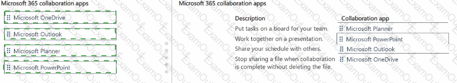 Match each collaboration app to its description. To answer, move the appropriate collaboration app from the column on the left to its description on the right. You may use each collaboration app once, more than once, or not at all.