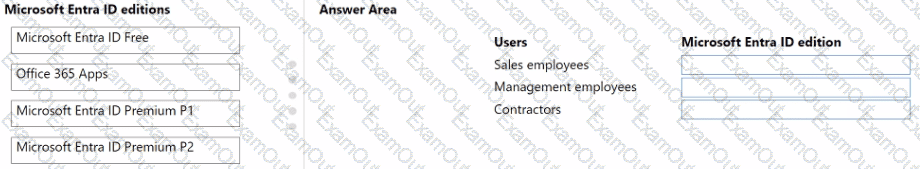 What should you use? To answer, drag the appropriate Microsoft Entra ID editions to the correct users. Each Microsoft Entra ID edition may be used once, more than once, or not at all. You may need to drag the splitbar between panes or scroll to view content.