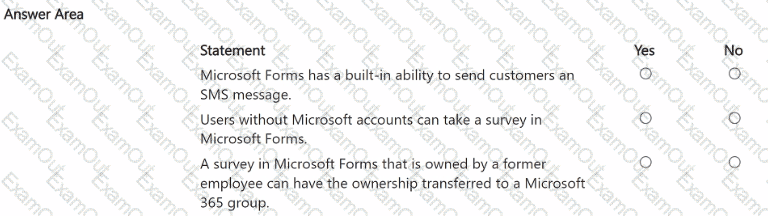 For each of the following statements, select Yes if the statement is true. Otherwise, select No.